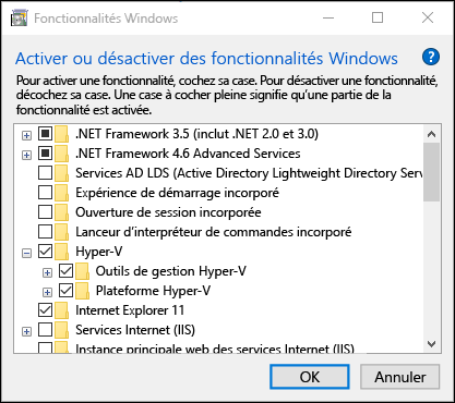 3 – Sélectionnez ensuite Hyper-V comme sur l’image ci-dessous puis faire un clic sur OK